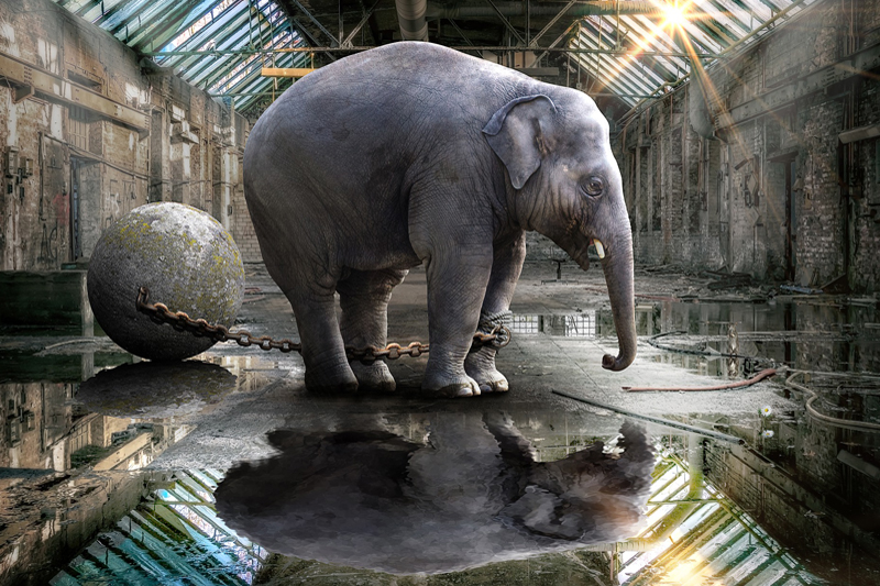 Instead of the story about the "boiling frog", there is something from ‘real life’ that is classified as the "psychological tactics for manipulating people 101". It has always been very difficult for an incomparably weaker human being to control a large and strong terrestrial animal such as an ELEPHANT, but that all changed the moment that a technique was discovered that over time proved to be ideally applicable to US. Namely, an elephant cub, that is several times weaker than the full grown animal, is kept in place only via a small thin length of rope that is tied to its front leg, no chains, no cages, and it should be obvious that the elephant could, at any time, break free of its bonds but for some reason, it does not. Its mind has become conditioned into believing that no matter how much it tries, it will never break free of that rope. It believes that the rope can hold it down and thus after a while, even though it has now gained in strength and size, the elephant stops attempting to get loose. The elephant gets used to given situation, accepts it as NORMAL and NO LONGER RESISTS IT ! So moral of the story revolves around what we think or believe to be true. Should we not tend to envision a different outcome or possibility to a ‘given situation’ ?!